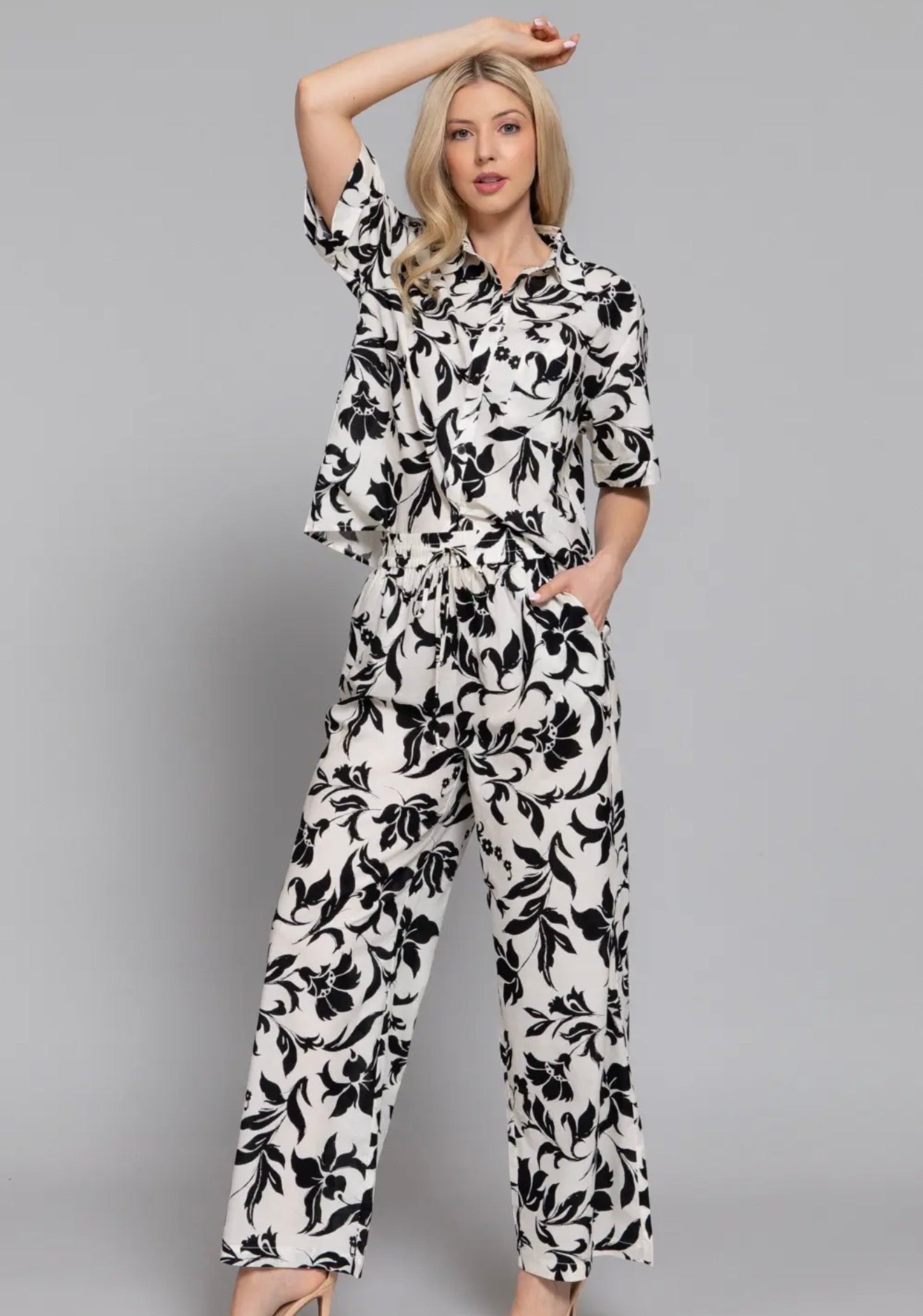 SHORT SLEEVE PRINTED VOILE SHIRT & LONG PANTS SET